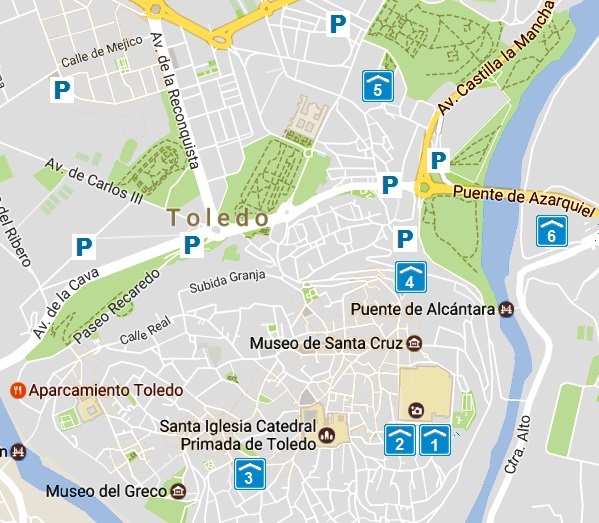 P1 - Indigo parking - C/ Corralillo San Miguel, s/n - 45001 ToledoP2 - Garaje Alcázar - Cuesta de los Capuchinos, 6 - 45001 Toledo